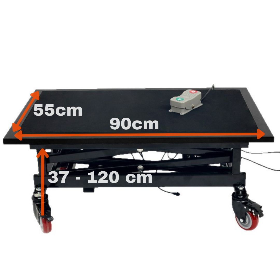 Ova električna dizalica omogućava brzo i jednostavno podizanje predmeta do 180 kg. Uz pomoć električnog nožnog prekidača, visina stola se podešava od 37 do 120 cm za svega 42 sekunde.