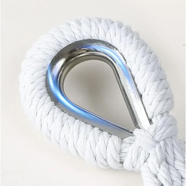 Kvalitet koji traje! Naše viseće mreže su napravljene od pojačanih kopči tipa ''pačji kljun'' radi otpornosti na habanje i sigurnosti. Metalne kopče su obložene na kukama radi zaštite, sprečavajući pucanje užeta i pružajući duži vijek trajanja. U poređenju sa drugim uobičajenim visećim mrežama, naši proizvodi su izdržljiviji i možete uživati na svojoj mreži dugoročno.