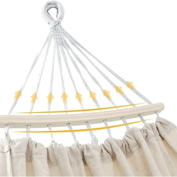 Svako pamučni vlakno je ručno pređeno, što znači da je svaki konac izuzetno mekan i nealergijski. Sav materijal je prozračan i sprječava znoj i vlagu. Obezbjedite da vaša koža bude čista i suva, bez obzira na unutrašnje ili spoljašnje okruženje u kojem se viseća mreža nalazi.