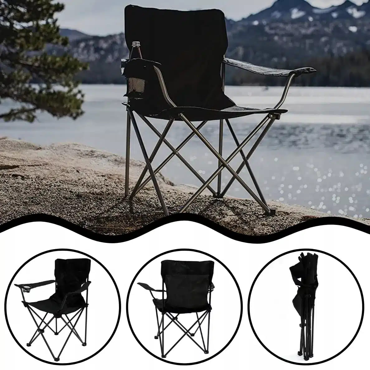 Sklopiva stolica za kampovanje sa naslonom i držačem za piće