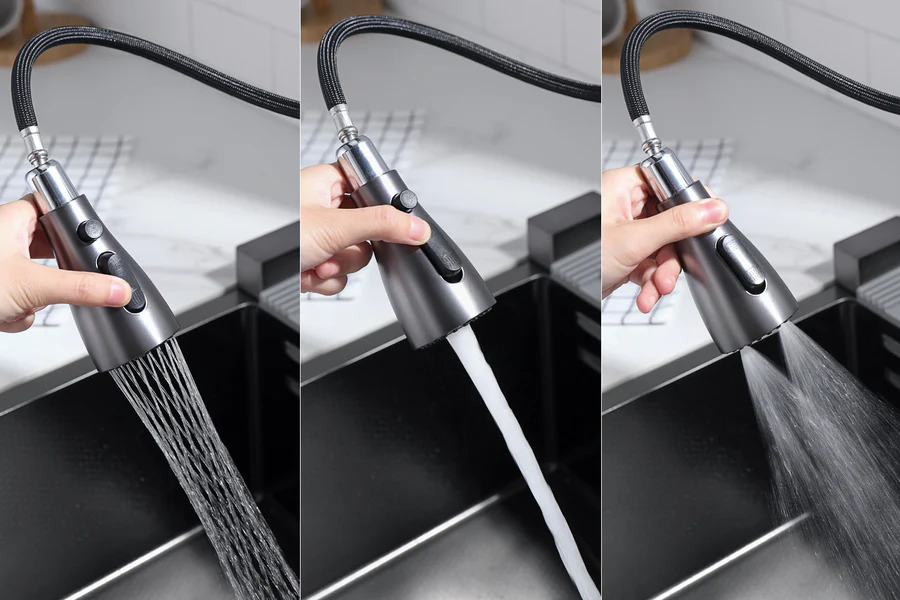 Ova svestrana česma sa crijevom sadrži tri načina pranja, prilagođavajući se različitim situacijama u kuhinji. Ovo ne samo da poboljšava funkcionalnost česme, već i optimizuje efikasnost tokom čišćenja.
