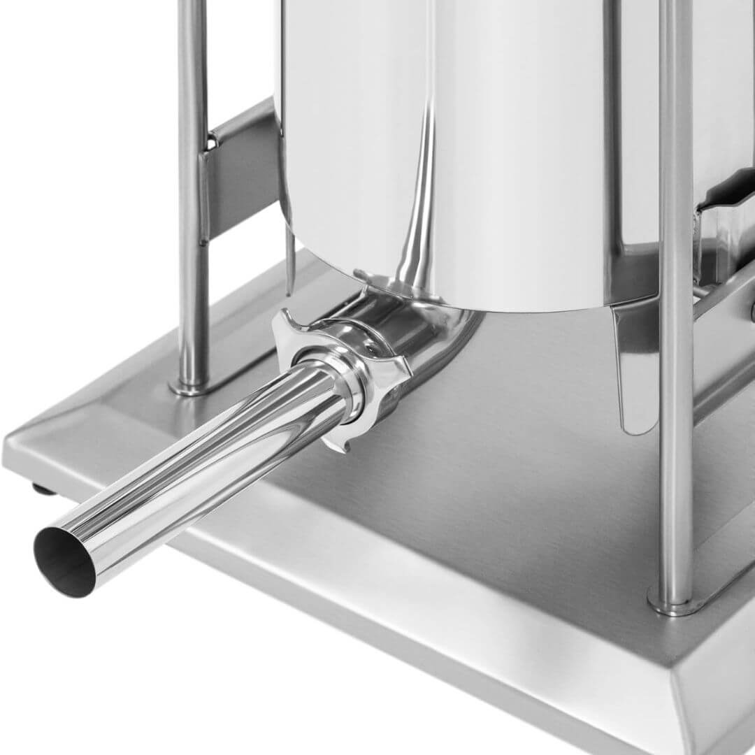 Izrađen od visokokvalitetnog nerđajućeg čelika, ovaj električni top za punjenje kobasica je otporan na habanje, koroziju i lako se čisti. Silikonska brtva sprječava curenje mase, dok ventil za odzračivanje osigurava kvalitetniji rezultat bez zraka u smjesi.
