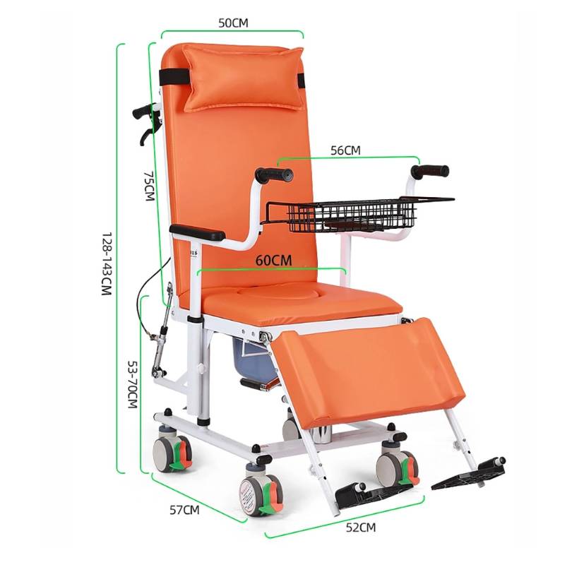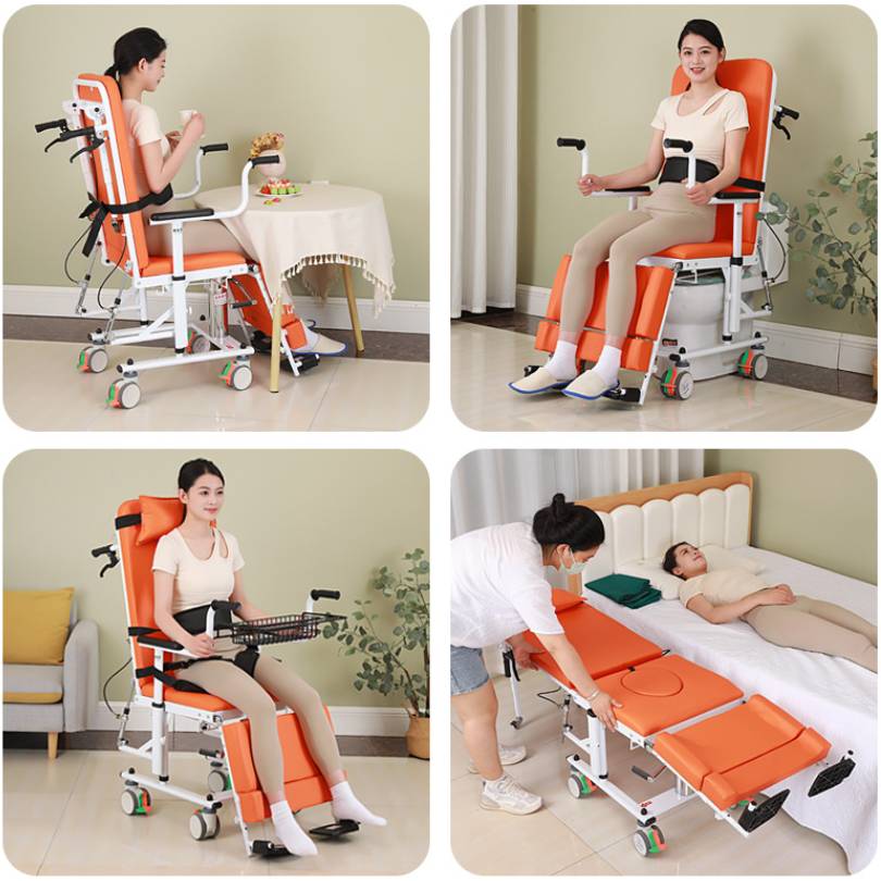 Višenamjenska kolica dizajnirana za potpunu njegu i lakši prijenos osoba sa smanjenom pokretljivošću. Zahvaljujući hidrauličnom sistemu podizanja i potpunoj mogućnosti ležanja do 180 stepeni, omogućuju bezbjedan i udoban transfer pacijenta sa kreveta, u toalet, na tuširanje ili u odmaranje – sve uz minimalan napor njegovatelja.